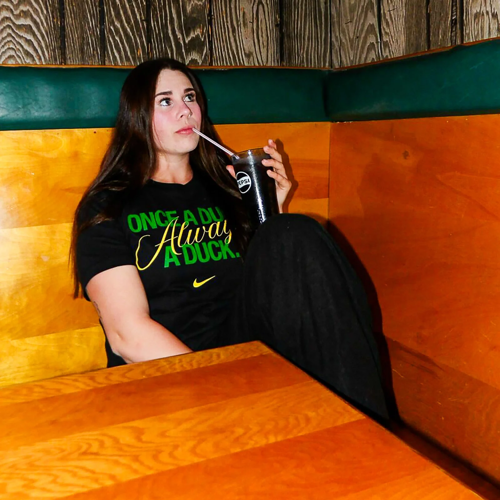 The Once A Duck Tee is an original DOAF design celebrating the Duck community. The graphic is inspired by the motto of Ducks past and present.